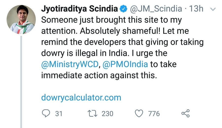 Web Portal Calculates Dowry For Pitch Black Grooms Jyotiraditya Scindia Tweets To Pmo